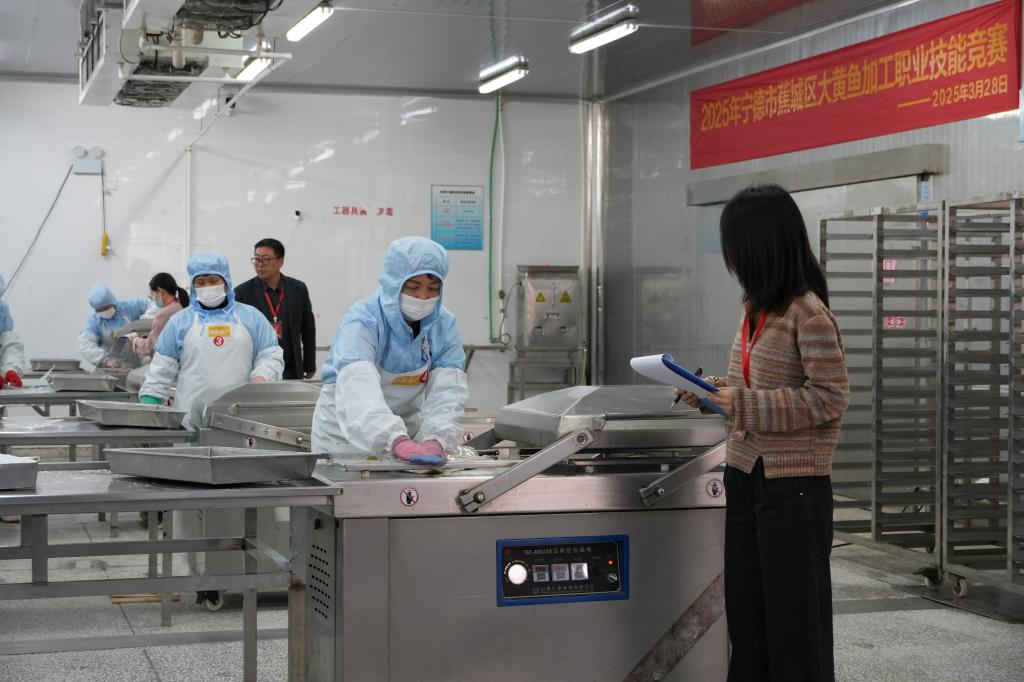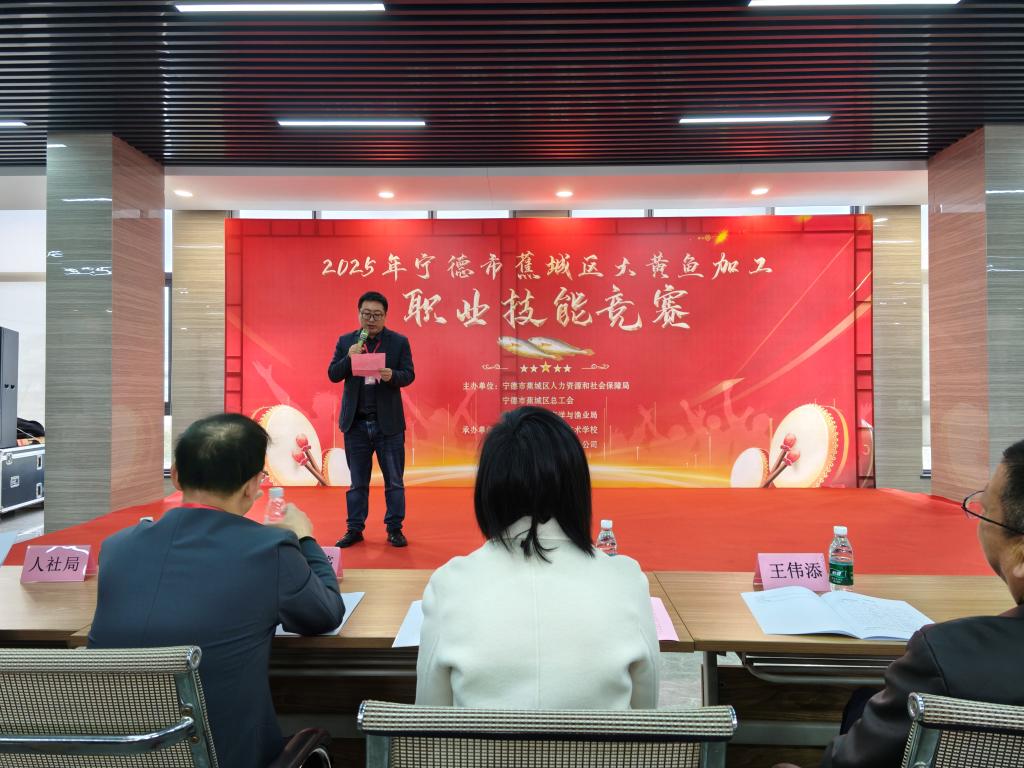 2025年3月28日,由宁德市蕉城区人力资源和社会保障局、海洋与渔业局联合主办的“2025年宁德市蕉城区大黄鱼加工职业技能竞赛”在福建岳海水产食品有限公司成功举办。我院食品科学与工程系主任刘春雷老师受邀担任竞赛裁判长,带领本系三位资深专业教师组成专家评审团,对参赛选手的大黄鱼加工技术进行全方位科学评判,为赛事注入高校智识力量。
