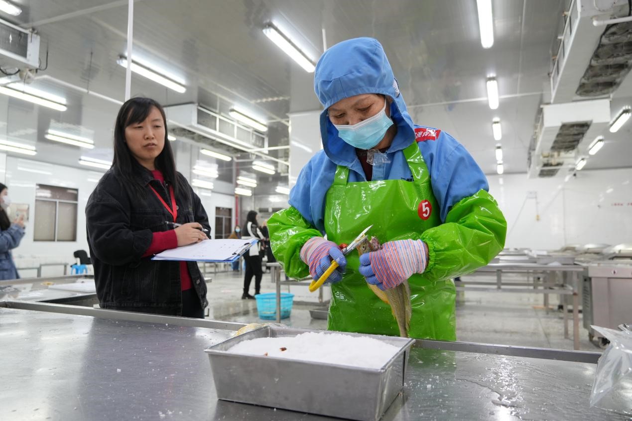 作为中国大黄鱼之乡,宁德市蕉城区持续推动大黄鱼产业链高质量发展。本次竞赛以匠心智造,赋能海洋经济为主题,吸引了来自全区10余家企业的49名技术能手同台竞技。竞赛内容涵盖大黄鱼原料处理、去鳞剖杀、腌制加工及包装等全流程环节,重点考察选手的操作规范性、技术创新性及产品质量把控能力。