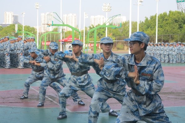 在军训末期,进行了总路程15公里的拉练。路途虽远,但同学们从未有放弃的念头,一路坚持到底。我院汇演的擒敌拳方阵队在田径场中央展示雄姿,动作行如流水,排面整齐,声声震撼人心。汇演后,学校统一开展了军事理论课,国防安全课等与国防教育相关的主题课程。