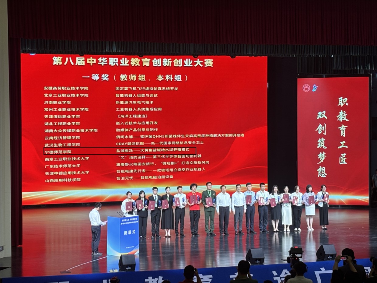 5月29日至30日,第八届中华职业教育创新创业大赛全国总决赛在湖北省黄石市举行,我院《盐滩鱼跃—大黄鱼盐碱地水域养殖模式》项目通过激烈角逐,凭借独特的社会意义,显著的应用价值和广阔的市场前景,以突破性技术斩获全国第四的优异成绩,荣获第八届中华职业教育创新创业大赛全国本科组一等奖。
