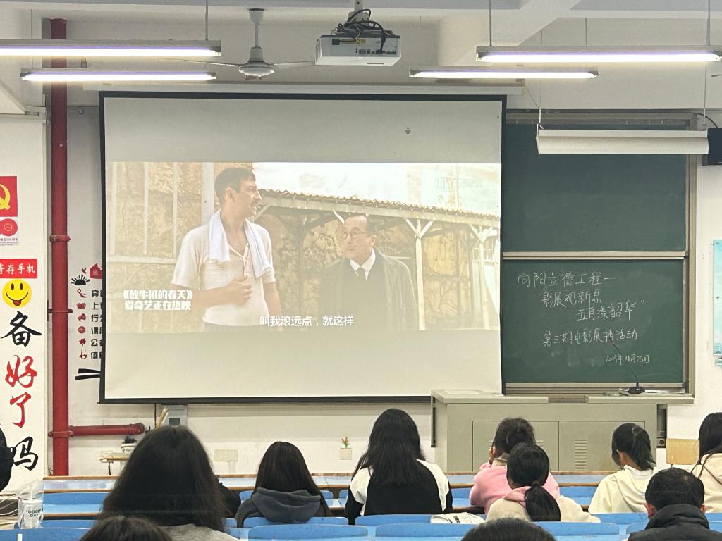 为了加强我院学生的思想教育,落实立德树人的根本任务、坚持五育并举的教育理念,我院于11月25日晚19:00在求实楼C201顺利开展了第三期“影展观新思,五育漾韶华”电影展播活动。