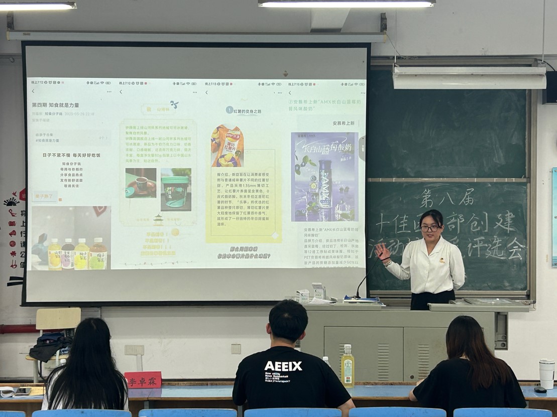 在评选过程中,各团支部通过精彩的演讲、生动的 PPT 展示,全方位地呈现了他们在思想引领、组织建设、志愿服务、校园文化活动等方面所取得的显著成绩。在展示过程中,有的团支部讲述了他们积极开展主题团日活动,提升团员思想素质的努力;有的展示了在各类社会实践中团员们的热情奉献和责任担当,展现了团支部的活力与凝聚力。评委们根据各团支部的综合表现进行了认真细致的评选,最终评选出了一、二、三等奖分别为:食品(闽台)231)班、食品231)班、食品221)班。最后由院团委书记林维杰指出各团支部不足和改进方法。