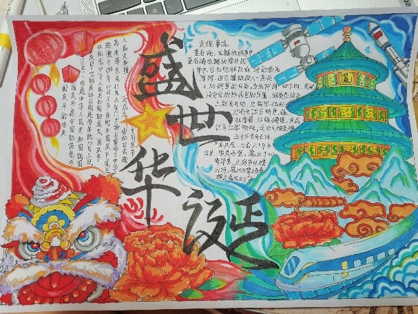 在本次活动中,同学们热情高涨,踊跃参与报名。同学们自主设计手抄报版面,精心准备绘画素材,从中国浩瀚的历史长河中选取国庆的元素。每一幅作品都蕴含着同学们对祖国的深厚情谊和对美好生活的向往,这些作品不仅展示了参赛同学的绘画才能,更是激发了海洋学子的爱国热情。