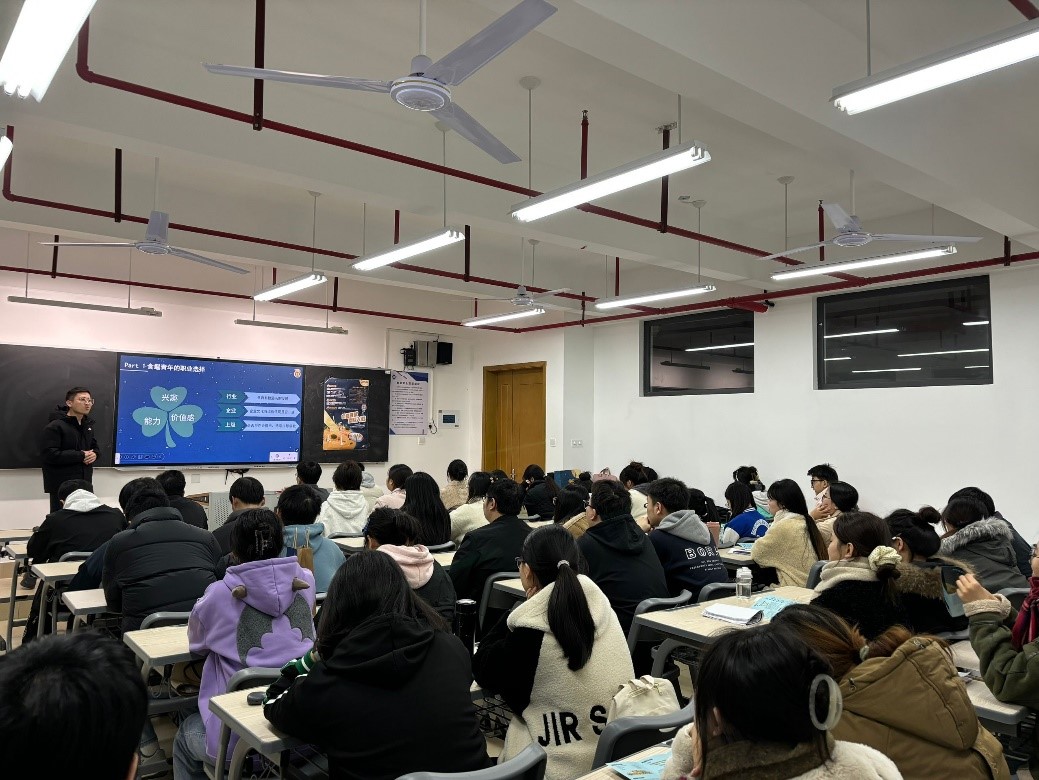 就业招聘宣讲会过程中,公司招聘负责人通过专业的宣讲向同学们介绍了企业的发展历程、企业文化、业务范围以及广阔的发展前景。同学们有序地与招聘负责人进行交流,对招聘岗位情况、职业发展路径和企业培训机制等问题进行积极提问,负责人就同学们提出的问题给予耐心、详细的解答,鼓励同学们将专业知识应用到实际工作中,实现理论与实践的紧密结合,顺利开启职业生涯。