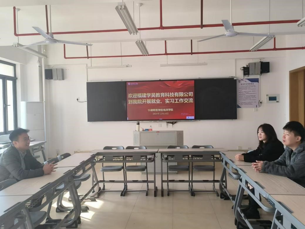 2024年12月24日,福建学昊教育科技有限公司一行到我院开展就业、实习工作交流,辅导员林维杰、苏晗参加会议。