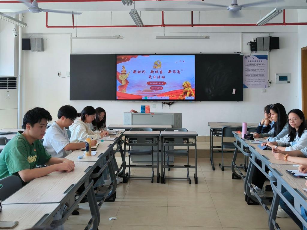 为深入学习贯彻党的最新理论成果,强化党员的责任担当意识,激励广大党员在新时代展现新担当新作为,我院学生党支部于10月29日在医教楼601开展“新时代、新担当、新作为”主题党日活动,本次活动由党支部书记苏晗主持,支部全体师生党员共同参与。