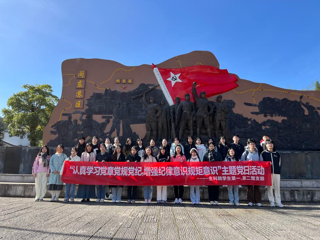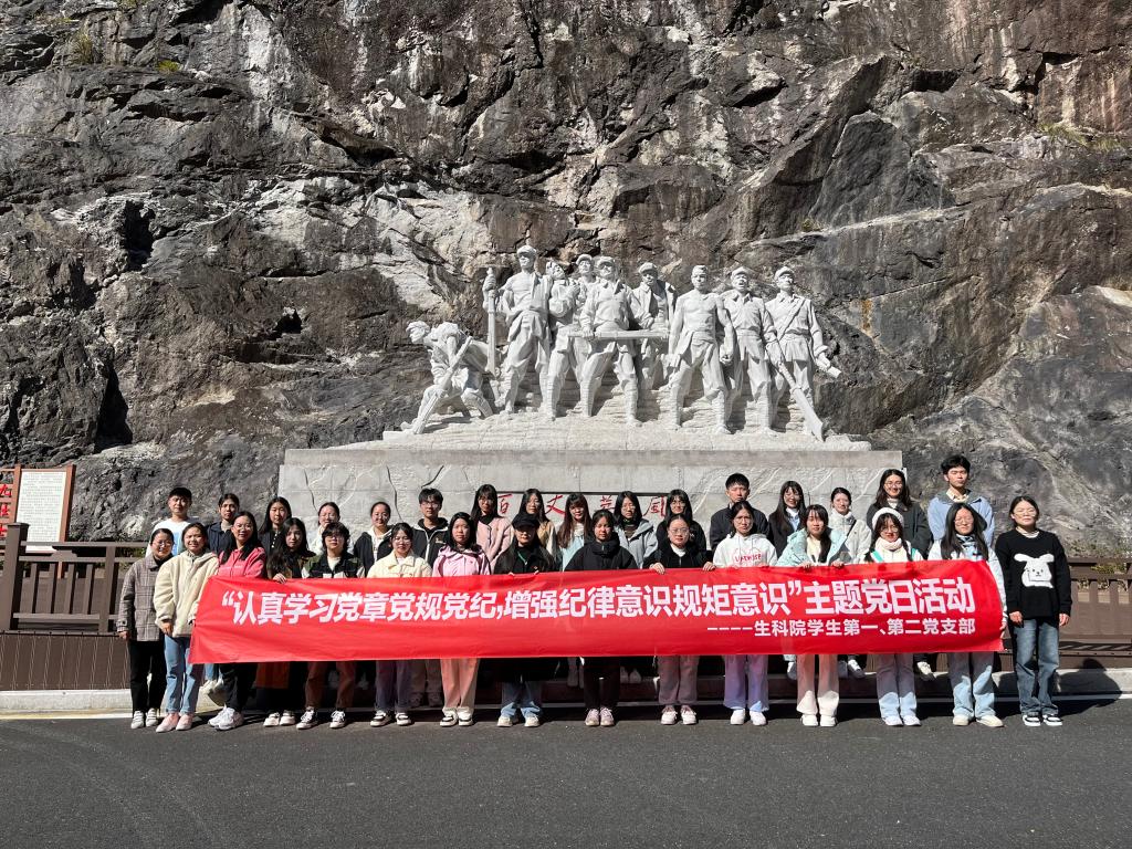 为深入学习贯彻习近平新时代中国特色社会主义思想,增强学生党员的党性意识和党性修养,11月18日宁德师范学院生命科学学院学生第一、第二党支部组织师生党员前往宁德霍童桃花溪,开展“认真学习党章党规党纪,增强纪律意识规矩意识”主题党日活动,重温闽东革命史,学习党章党规党纪,追寻革命先辈浴血奋战的足迹。