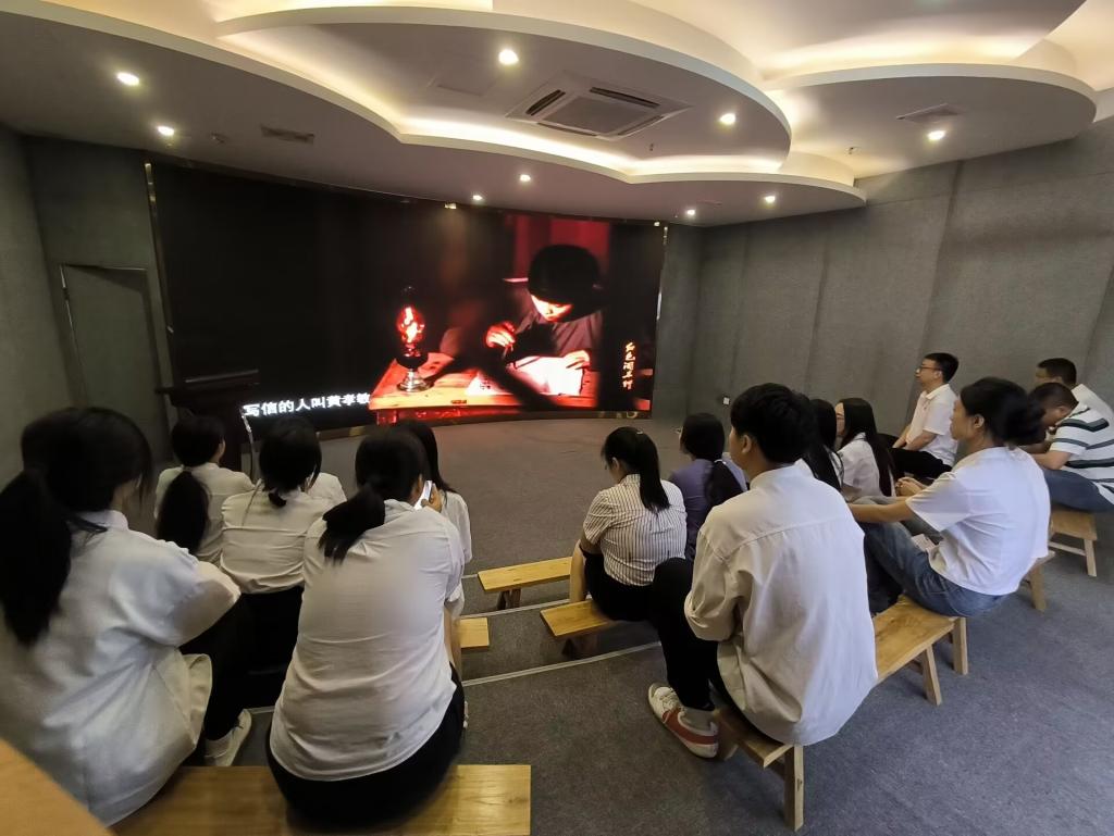 在红色展播厅,全体党员观看了红色故事教育片,了解了宁德市古田县黄孝敏烈士的生平事迹和光辉的战斗历程,深深体会到黄孝敏烈士坚定的信念和忠诚的情怀,沿着烈士的足迹,扛起火红的旗帜,烈士的精神时刻激励我们谱写齐心促跨越、合力谋复兴的时代序曲。