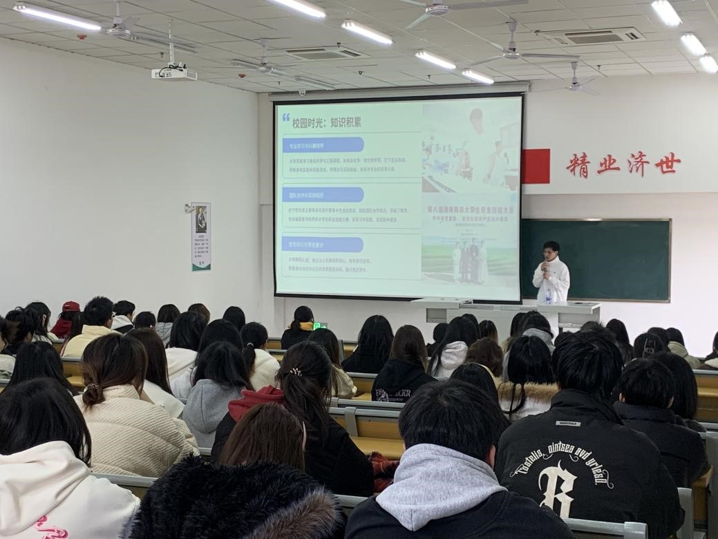 2025年3月8日,在医教楼101,我院邀请2018级食品科学与工程专业毕业生代表陈志鹏回校为我院学子开设《“工者匠心:人生是场拉力赛”》讲座报告,为现场听众带来了一场别开生面的职业与人生分享。