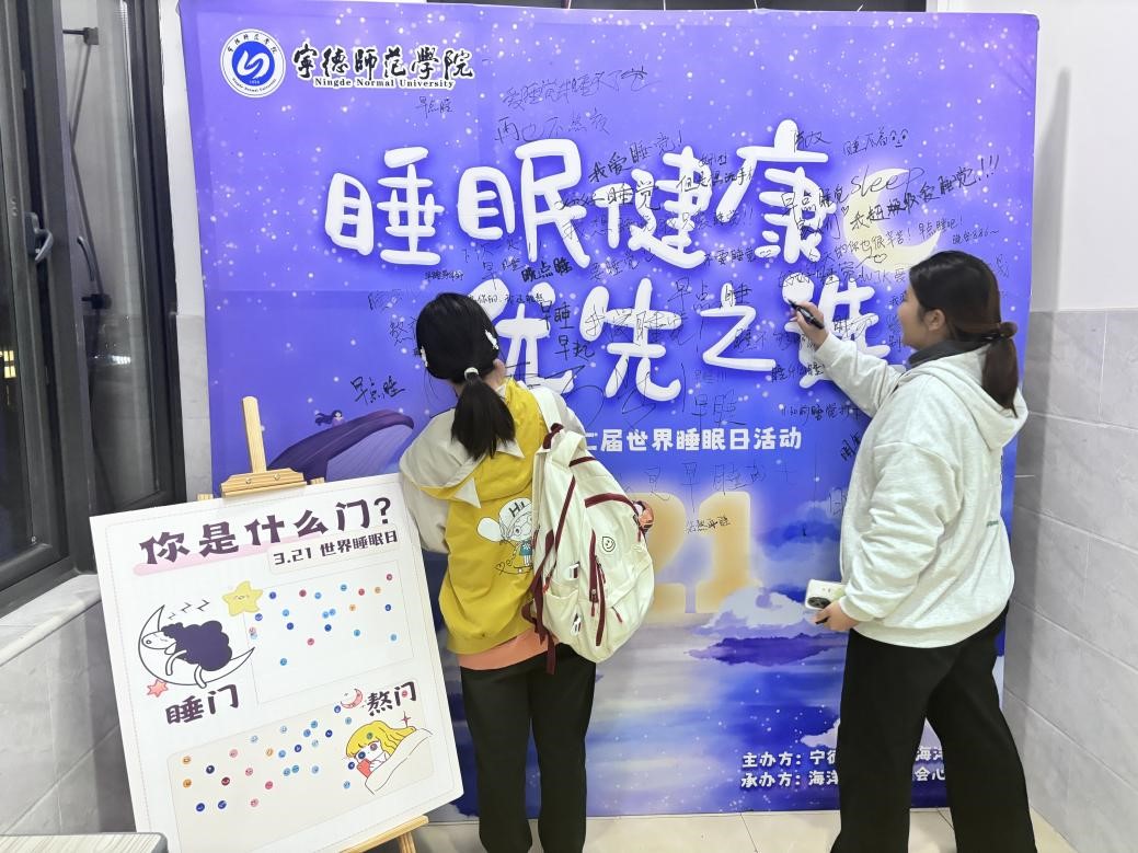 活动期间,同学们热情高涨,踊跃参与,纷纷在展板上留下个性签名,并与展板合影留念,记录下这一充满趣味的时刻。同学们还在小展板“睡眠习惯”一栏旁贴上贴纸,展示自身的睡眠习惯。不仅如此,同学们纷纷通过社交媒体分享活动照片与个人体会,进一步扩大了活动的影响力,让更多人关注到睡眠问题。