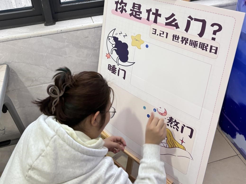 习近平总书记曾提出“要把人民健康放在优先发展的战略地位”,倡导全民养成文明健康的生活方式,包括合理作息、劳逸结合等,间接强调了睡眠对健康的重要性。2025年3月21日迎来了第25个世界睡眠日,今年的主题是“健康睡眠,优先之选”,凸显了睡眠健康在现代生活中的关键地位。为响应世界睡眠日的号召,我院精心策划并于3月19日至3月21日在医教楼六楼举办了睡眠日展板打卡活动。